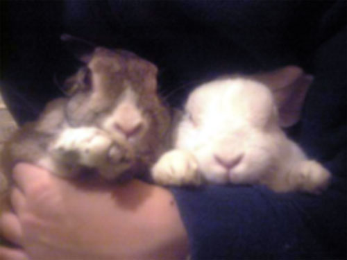 で親バカなのですがうちのうさどもの数少ないツーショットを貼らせて下さい。写り悪いんですが2003年の写真なので、撮った携帯の性能ががが。